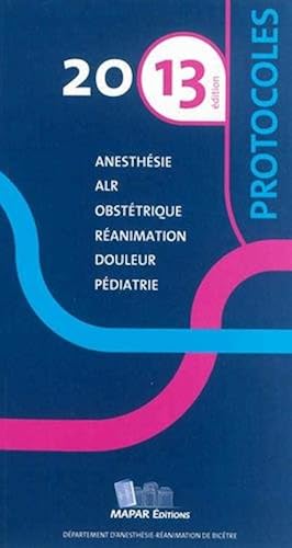 Protocoles 2013 d'anesthésie réanimation - Livres ~ Protocoles 2013 d'anesthésie réanimation . Voici la nouvelle livraison du Guide de Protocoles du MAPAR. la 13ème édition, produite par l'équipe du Département d'Anesthésie-RéanimatiOn de Bicêtre, aidée pour certains chapitres par quelques collaborations extérieures quo nous remercions au passage.